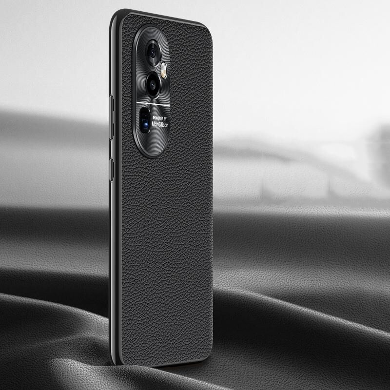 Θήκη τηλεφώνου από γνήσιο δέρμα με υφή Λίτσι για OPPO Reno10 Pro+ (Μπλε)