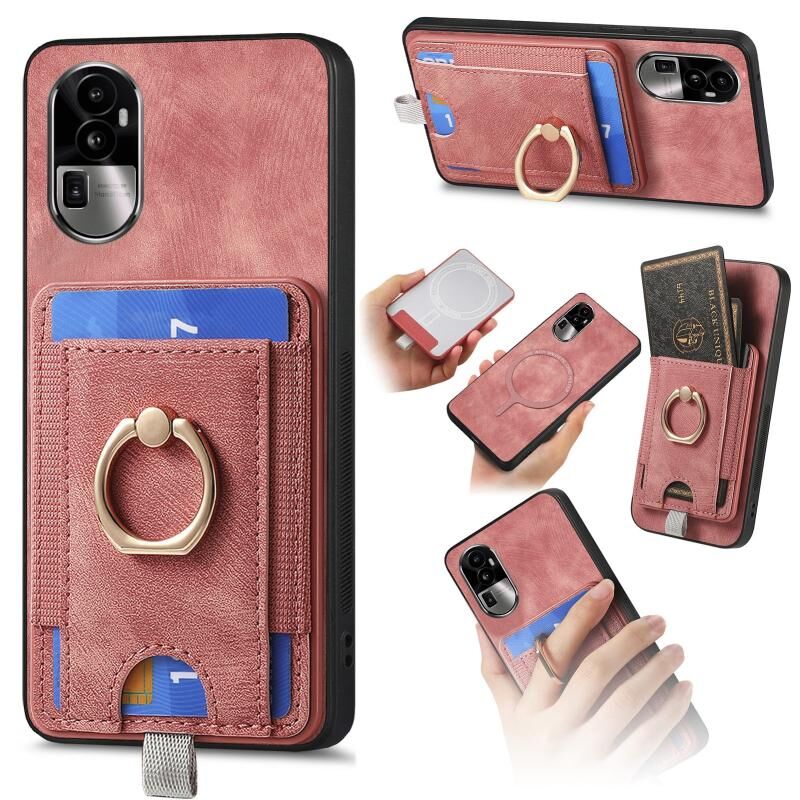 Για OPPO Reno10 Pro + Retro Splitable μαγνητική κάρτα τσάντα τσάντα δέρμα τηλέφωνο υπόθεση (ροζ)
