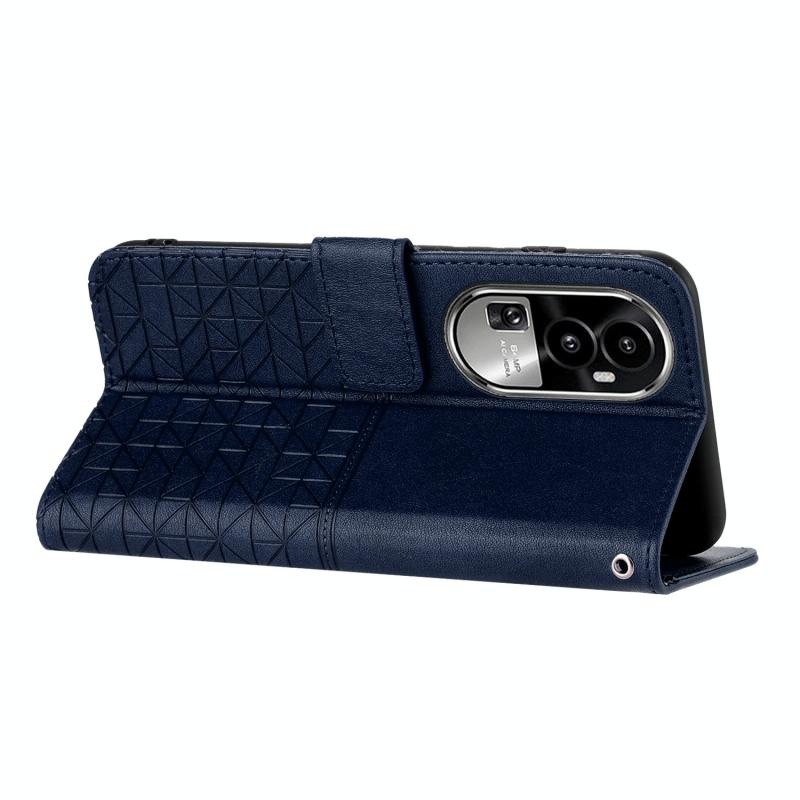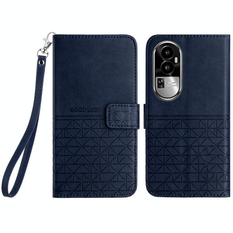 For OPPO Reno10 Pro+ Rhombic Texture Leather Phone Case with Lanyard(Blue)