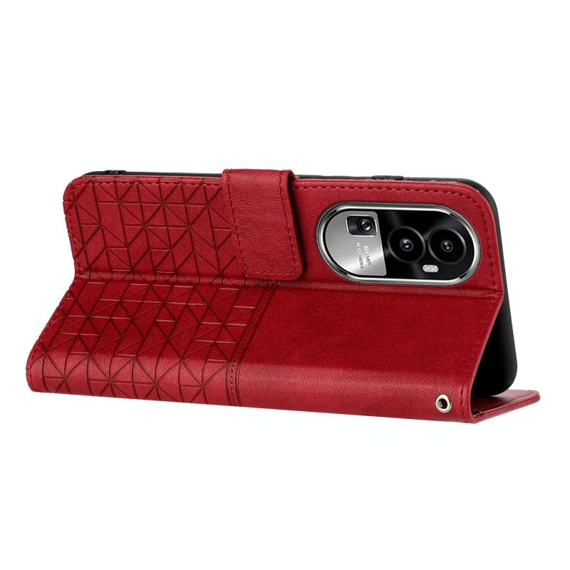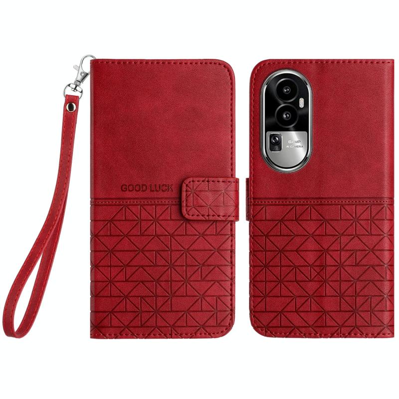For OPPO Reno10 Pro+ Rhombic Texture Leather Phone Case with Lanyard(Red)