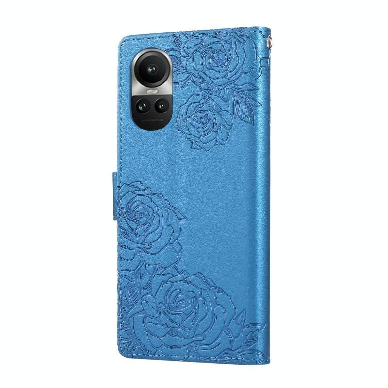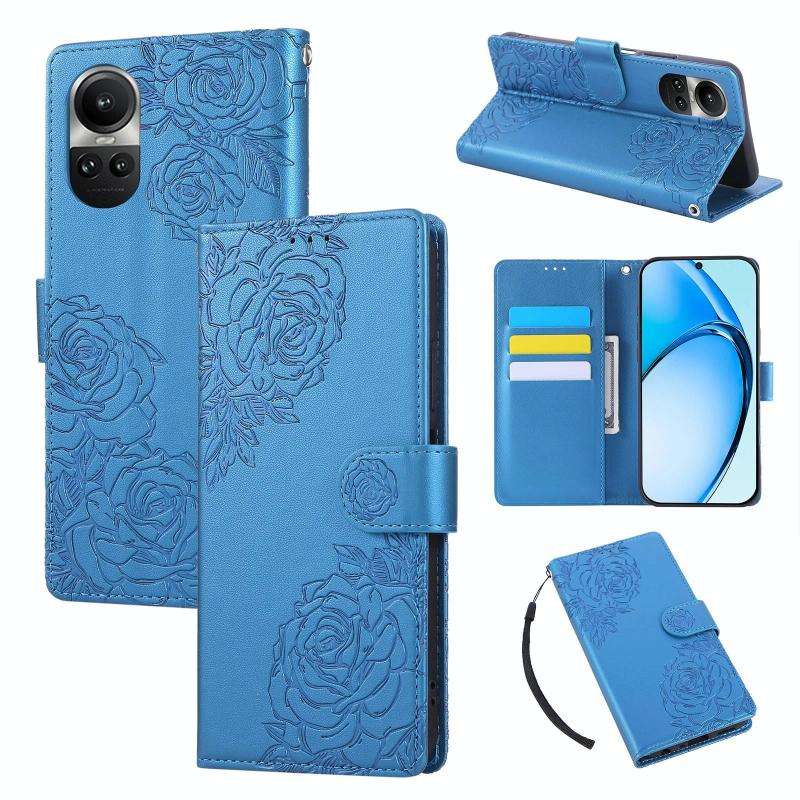For OPPO Reno10 Pro+ Rose Flower Embossed 3-Card Slots Leather Phone Case(Blue)