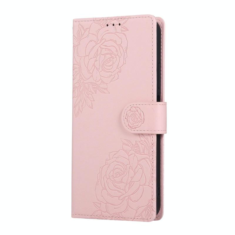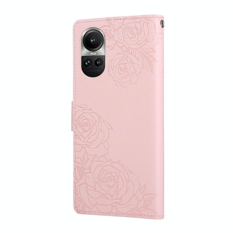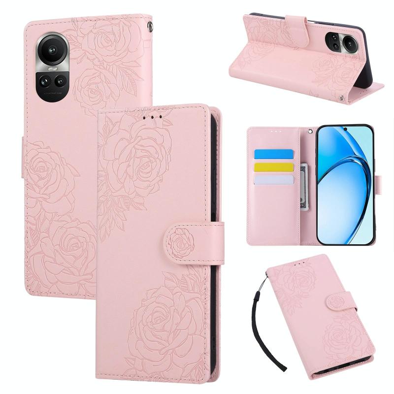 For OPPO Reno10 Pro+ Rose Flower Embossed 3-Card Slots Leather Phone Case(Pink)