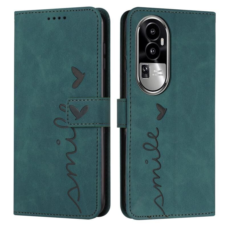 Για OPPO Reno10 Pro + δέρμα αισθάνονται καρδιά μοτίβο δερμάτινη θήκη τηλεφώνου (πράσινο)