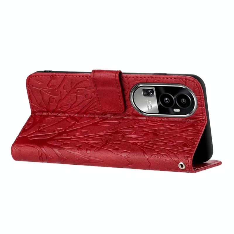 For OPPO Reno10 Pro+ Tree Birds Embossed Pattern Leather Phone Case(Red)