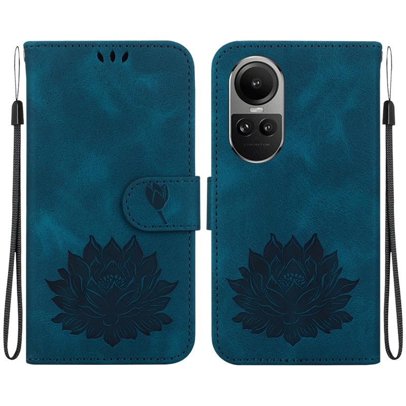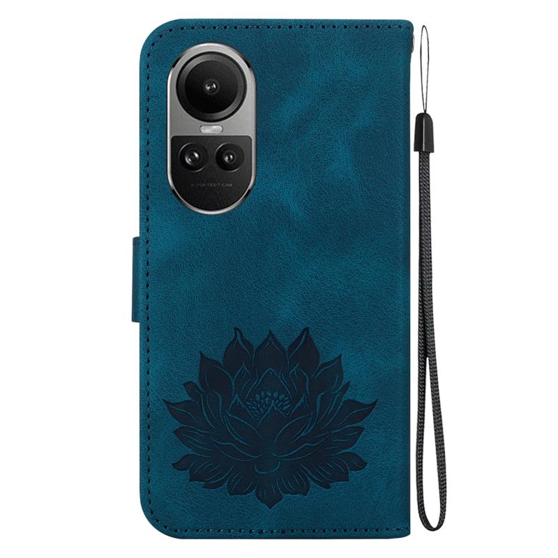For OPPO Reno10 / Reno10 Pro 5G Global Lotus Embossed Leather Phone Case(Dark Blue)