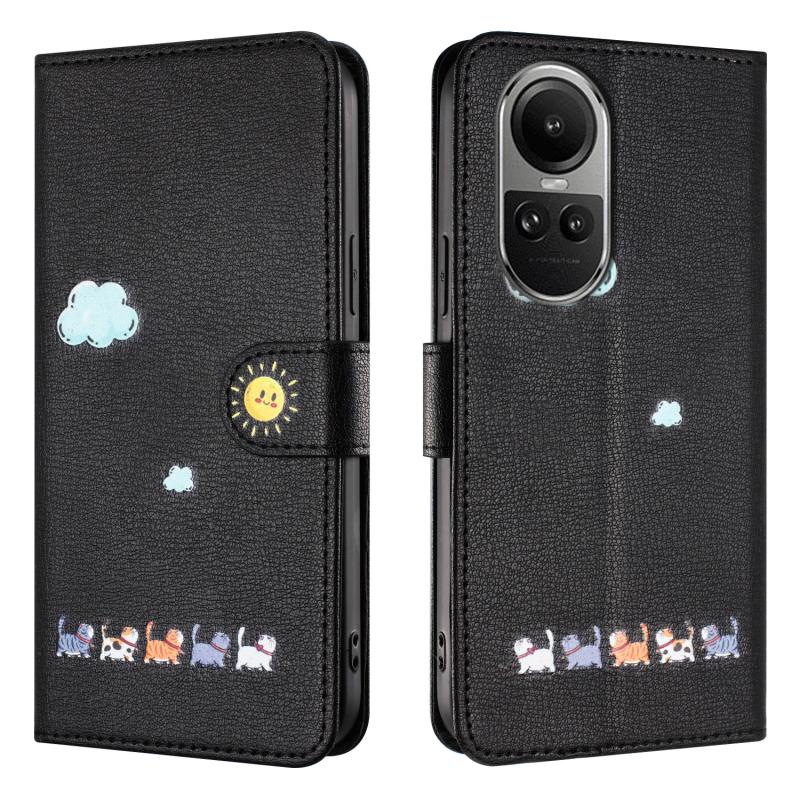 For OPPO Reno10 / Reno10 Pro Cartoon Cats Leather Phone Case(Black)