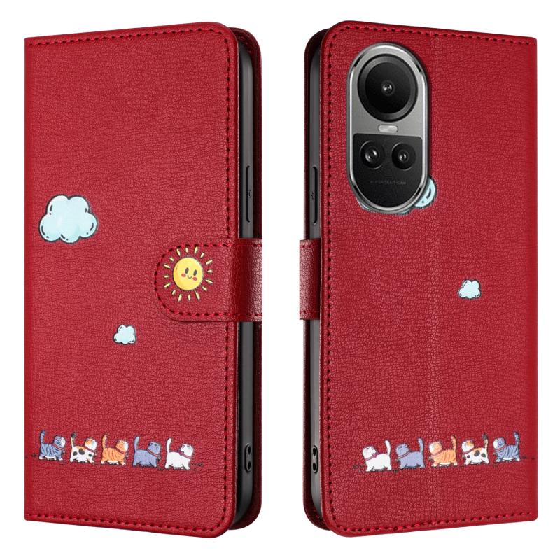 For OPPO Reno10 / Reno10 Pro Cartoon Cats Leather Phone Case(Red)