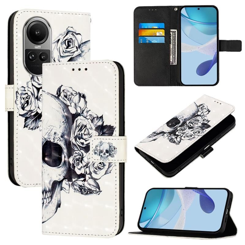 Θήκη τηλεφώνου από δέρμα με οριζόντια αναδίπλωση και τρισδιάστατη ζωγραφική για OPPO Reno10 / Reno10 Pro Global (Κρανίο)