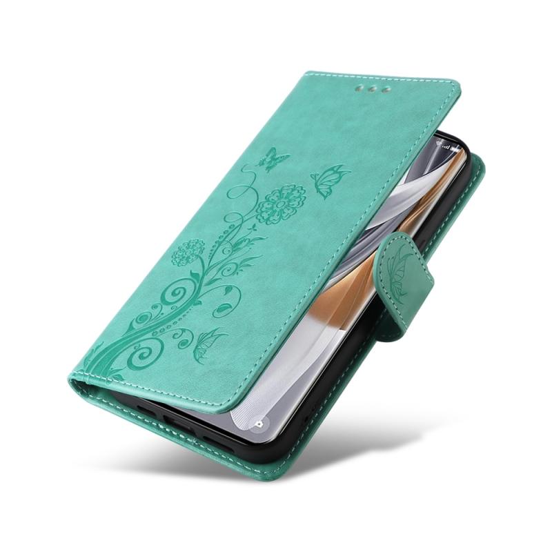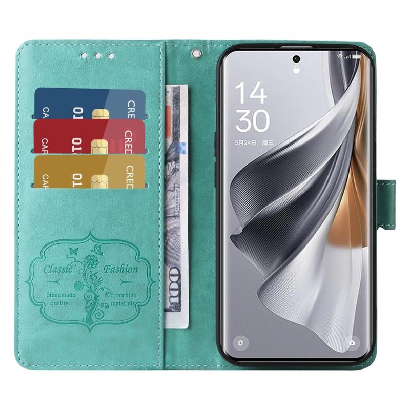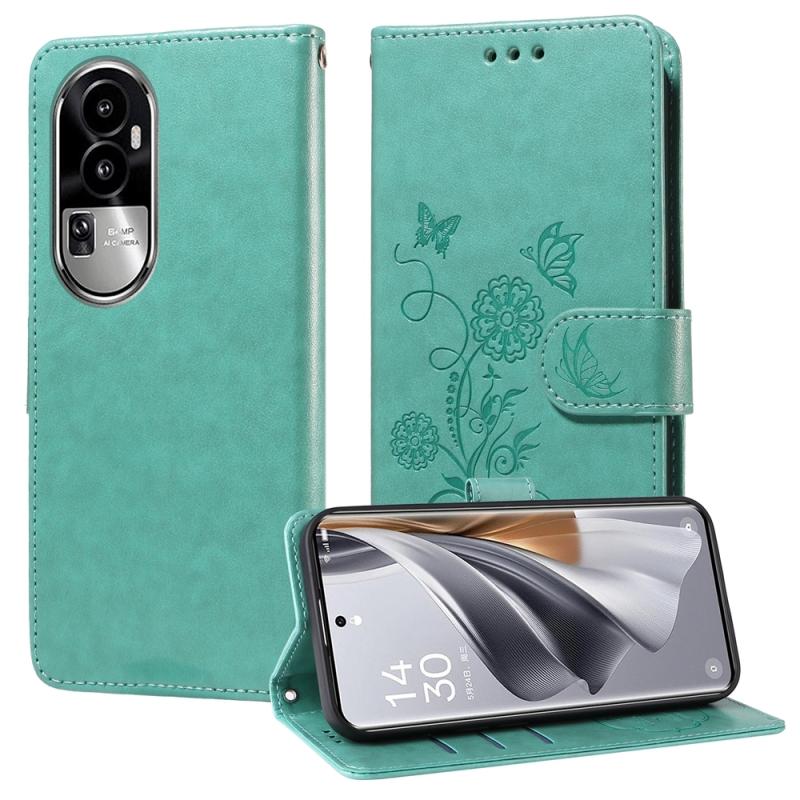For OPPO Reno10 / Reno10 Pro Global Embossed Butterfly Flowers Leather Phone Case(Green)