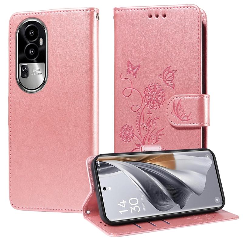 For OPPO Reno10 / Reno10 Pro Global Embossed Butterfly Flowers Leather Phone Case(Rose Gold)