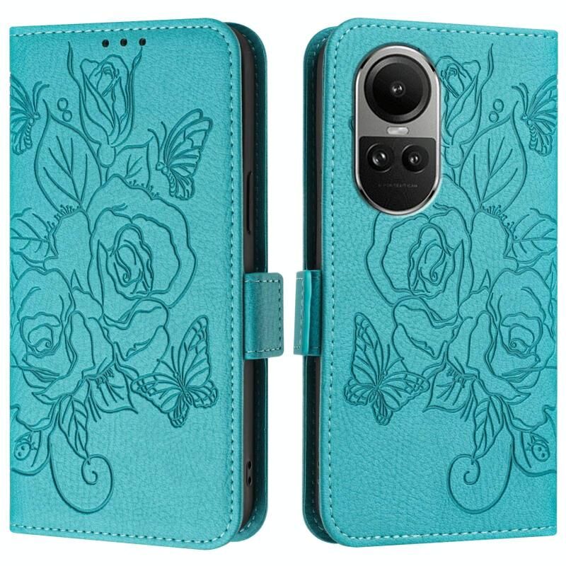 Για OPPO Reno10 / Reno10 Pro Παγκόσμια ανάγλυφο Rose RFID Anti-theft Δερμάτινη θήκη τηλεφώνου (γαλάζιο)