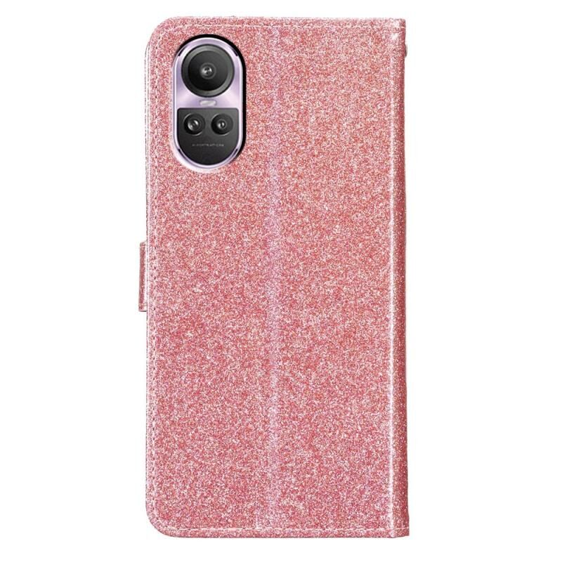 Θήκη τηλεφώνου από δέρμα με γυαλιστερή πούδρα για OPPO Reno10 / Reno10 Pro Global (Μαύρο)