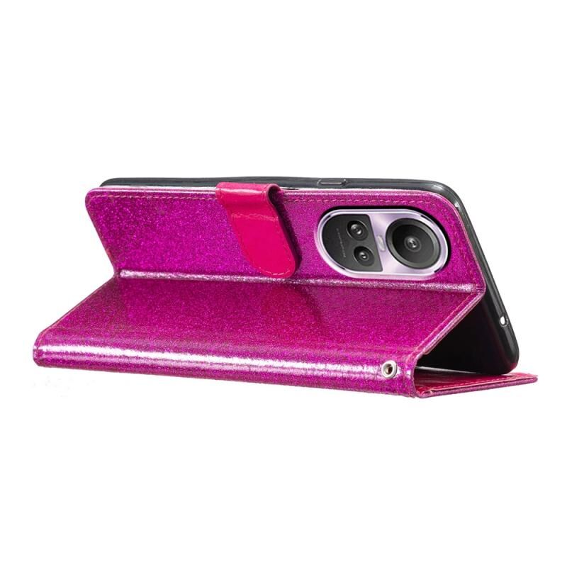 Θήκη τηλεφώνου από δέρμα με γυαλιστερή πούδρα για OPPO Reno10 / Reno10 Pro Global (Μαύρο)