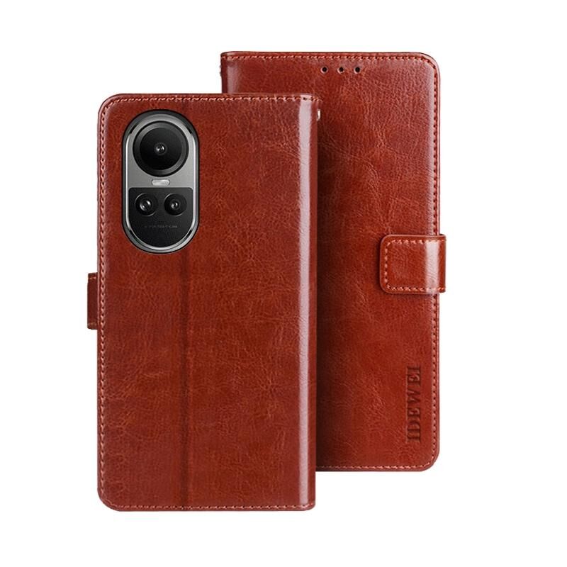 Για OPPO Reno10 / Reno10 Pro Global idewei Θήκη τηλεφώνου από δέρμα Crazy Horse με βάση στήριξης (Λευκό) (Καφέ)