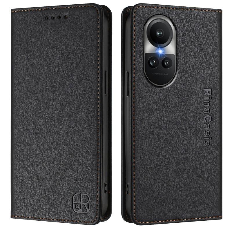 Θήκη τηλεφώνου από δέρμα με μαγνητική απορρόφηση και προστασία RFID για OPPO Reno10 / Reno10 Pro Global RC01 διπλού τύπου (Μαύρο)