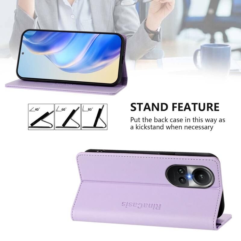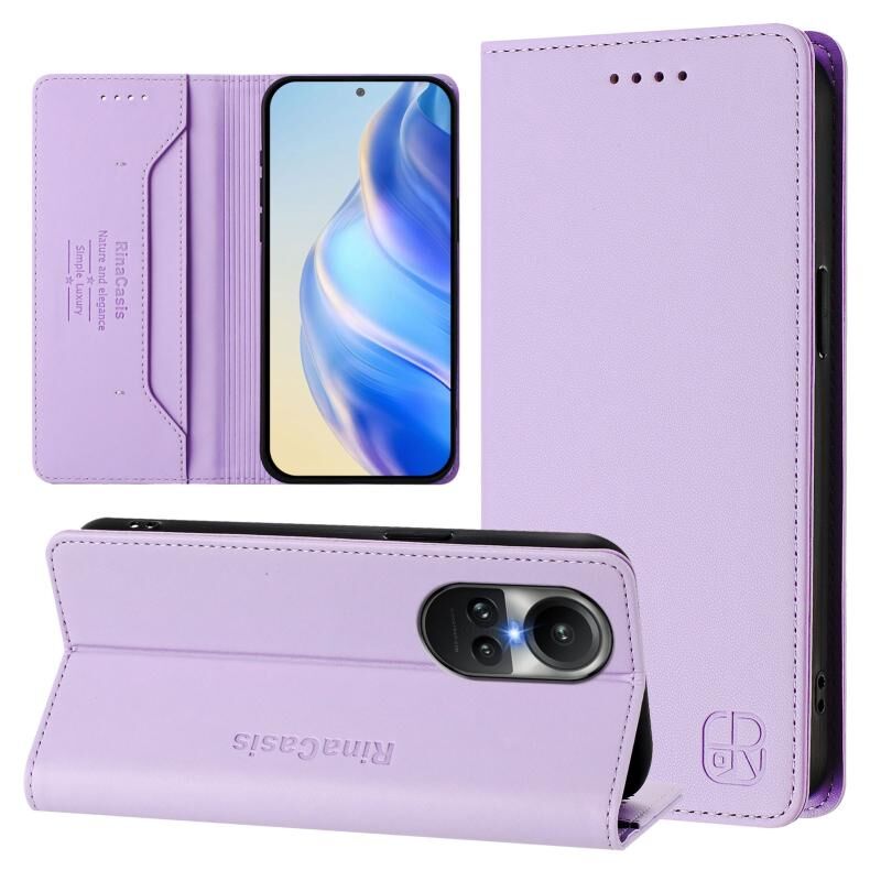 Θήκη τηλεφώνου από δέρμα με μαγνητική απορρόφηση και προστασία RFID για OPPO Reno10 / Reno10 Pro Global RC01 διπλού τύπου (ανοιχτό μωβ)