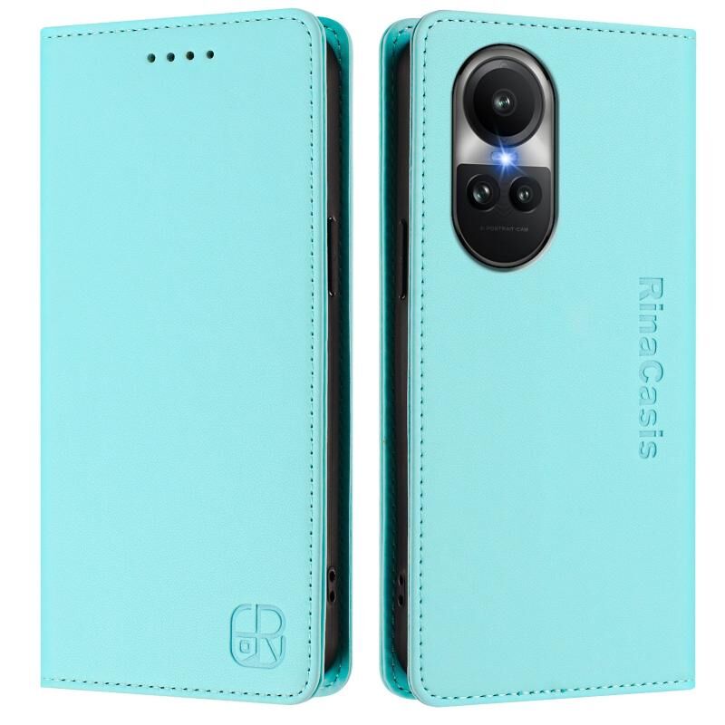 Θήκη τηλεφώνου από δέρμα με μαγνητική απορρόφηση και προστασία RFID για OPPO Reno10 / Reno10 Pro Global RC01 διπλού τύπου (Μέντας πράσινο)