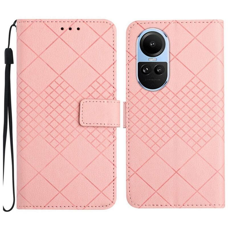 Για OPPO Reno10 / Reno10 Pro Global Rhombic Grid Υφή δερμάτινη θήκη τηλεφώνου (ροζ)