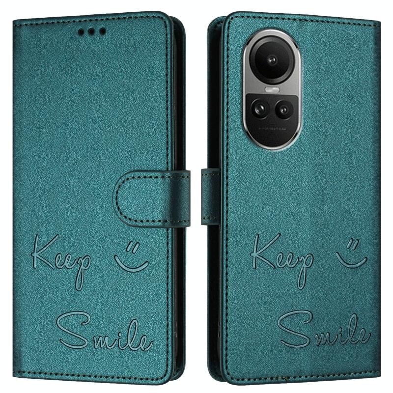 Για OPPO Reno10 / Reno10 Pro Παγκόσμια χαμόγελο ανάγλυφο RFID δερμάτινη θήκη τηλεφώνου (Peacock Green)