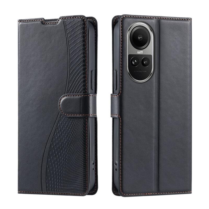 Για OPPO Reno10 / Reno10 Pro Παγκόσμιας Τάσης Εξαιρετικά λεπτή Δερμάτινη Θήκη Τηλεφώνου με Σημείο (Μαύρο)