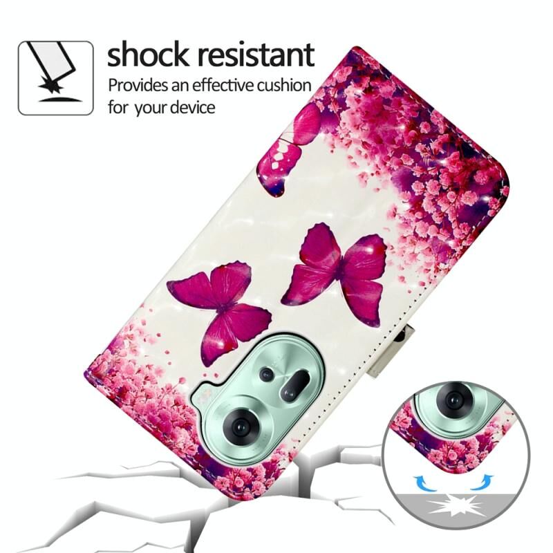 Θήκη τηλεφώνου από δέρμα με οριζόντιο άνοιγμα και τρισδιάστατη ζωγραφική για OPPO Reno11 5G Global (Ροζ Πεταλούδα)