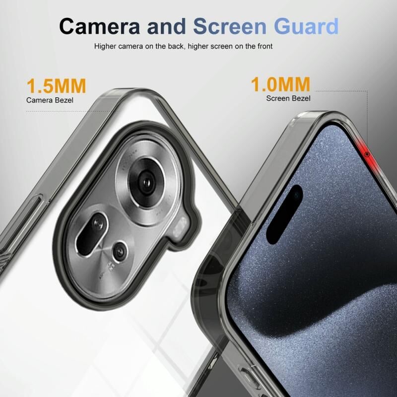 Θήκη τηλεφώνου για OPPO Reno11 5G Global, αντιολισθητική, διαφανής, υβριδική από ακρυλικό και TPU (Μαύρο)