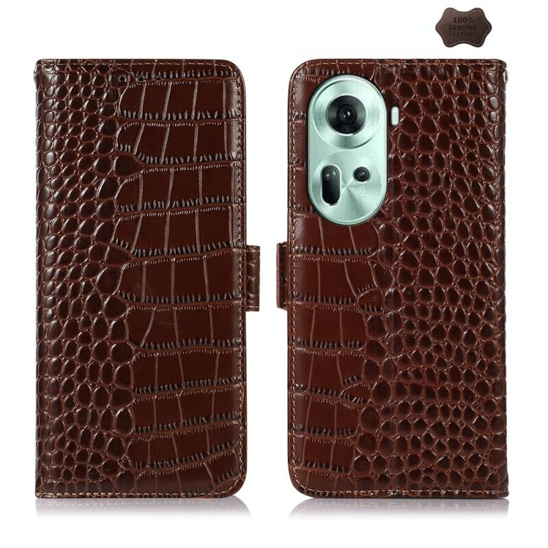 Θήκη τηλεφώνου από γνήσιο δέρμα μοσχαριού με επικάλυψη κροκόδειλου για OPPO Reno11 5G Global (Καφέ)