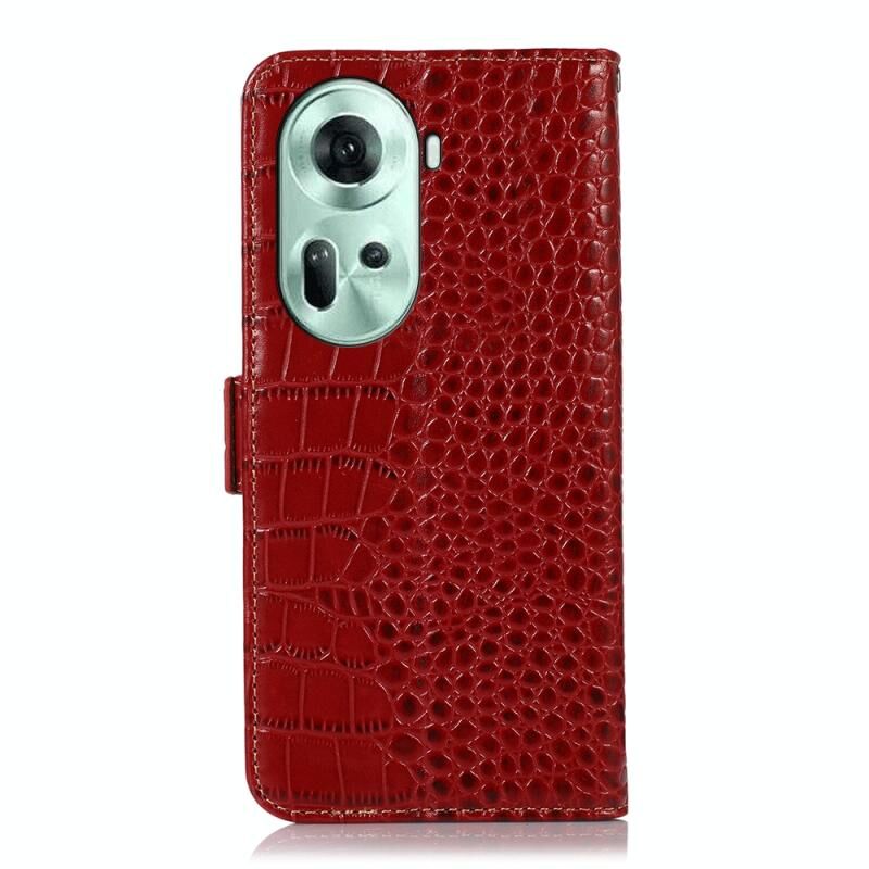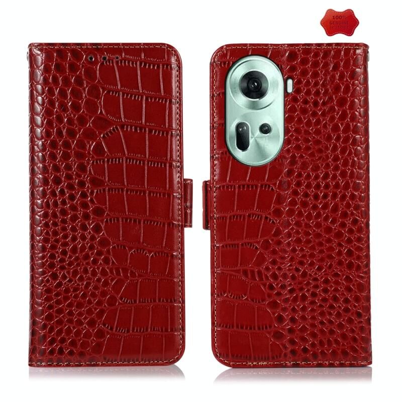 Θήκη τηλεφώνου από γνήσιο δέρμα μοσχαριού με επικάλυψη κροκόδειλου για OPPO Reno11 5G Global (Κόκκινο)
