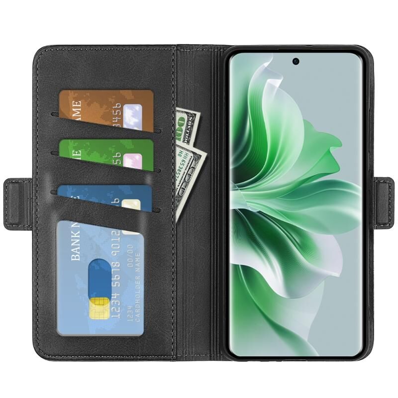 Θήκη τηλεφώνου δερμάτινη, οριζόντια, αναδιπλούμενη, με μαγνητικό κούμπωμα διπλής όψης για OPPO Reno11 5G Global (Μαύρο)