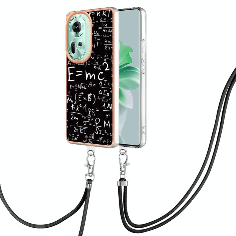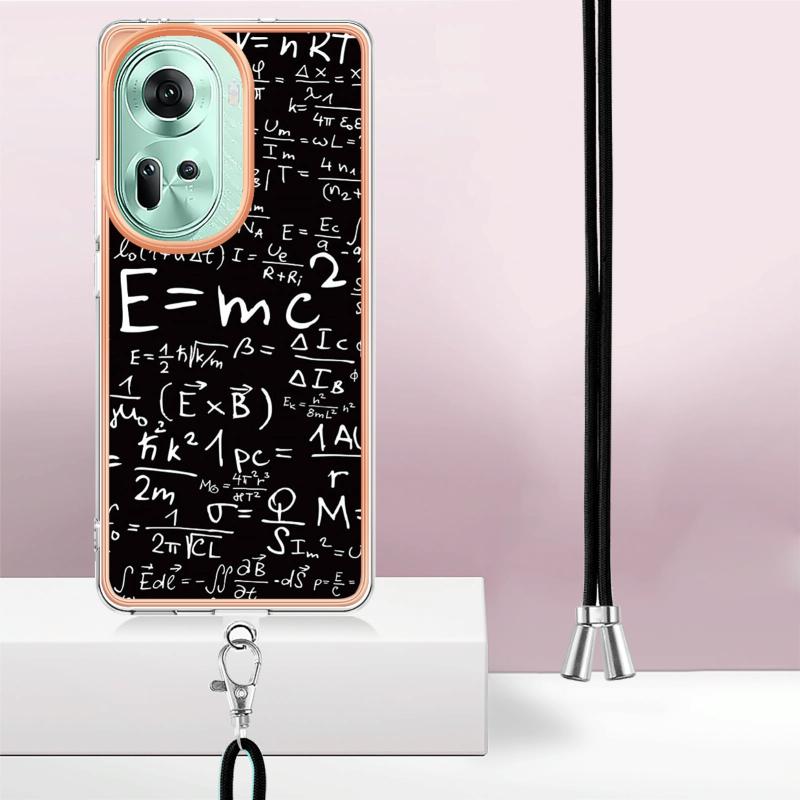 For OPPO Reno11 5G Global Electroplating Dual-side IMD Phone Case with Lanyard(Equation)