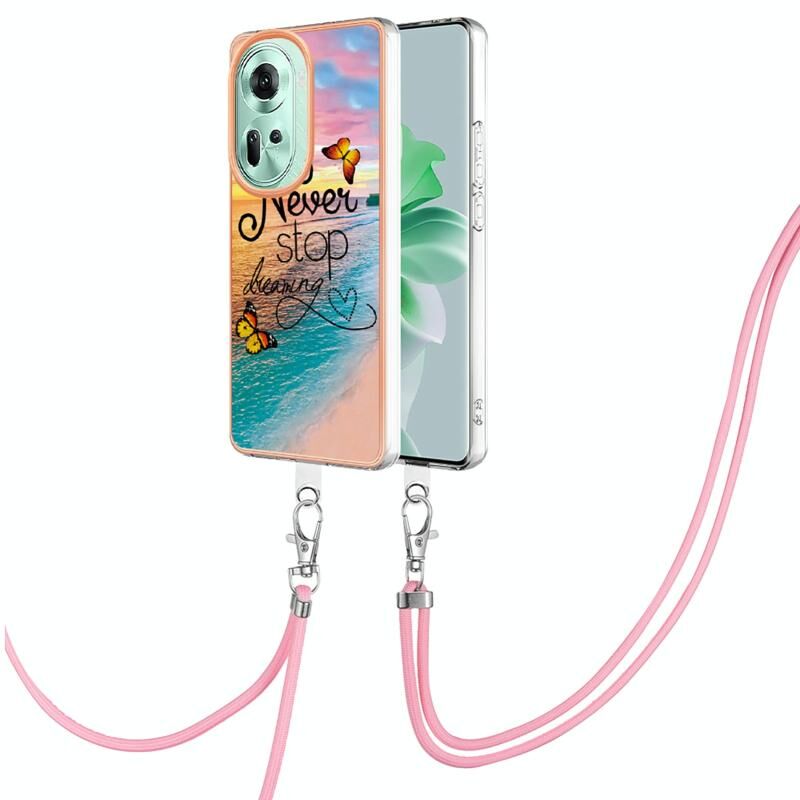 Θήκη τηλεφώνου OPPO Reno11 5G Global Electroplating IMD TPU με κορδόνι (Dream Butterfly)
