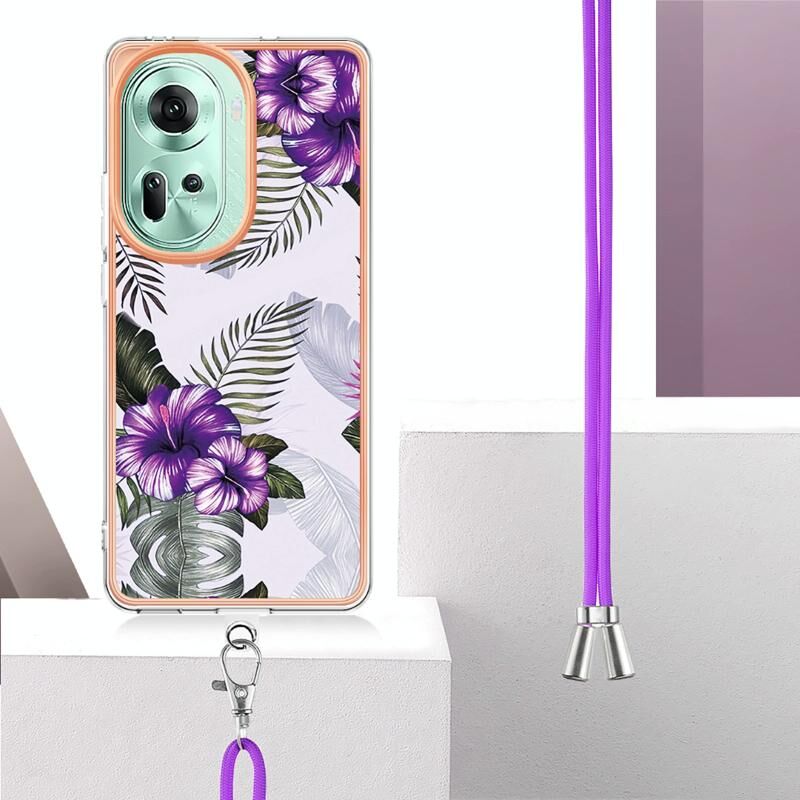Θήκη τηλεφώνου OPPO Reno11 5G Global Electroplating IMD TPU με κορδόνι (Ροζ Λέπια)