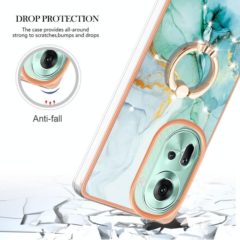 Θήκη τηλεφώνου OPPO Reno11 5G Global Electroplating Marble IMD TPU με Δακτύλιο Στήριξης (Λευκό 006)