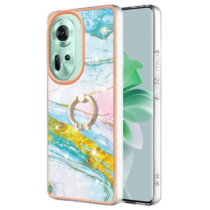 Θήκη τηλεφώνου OPPO Reno11 5G Global Electroplating Marble IMD TPU με Δακτύλιο Στήριξης (Λευκό 006)