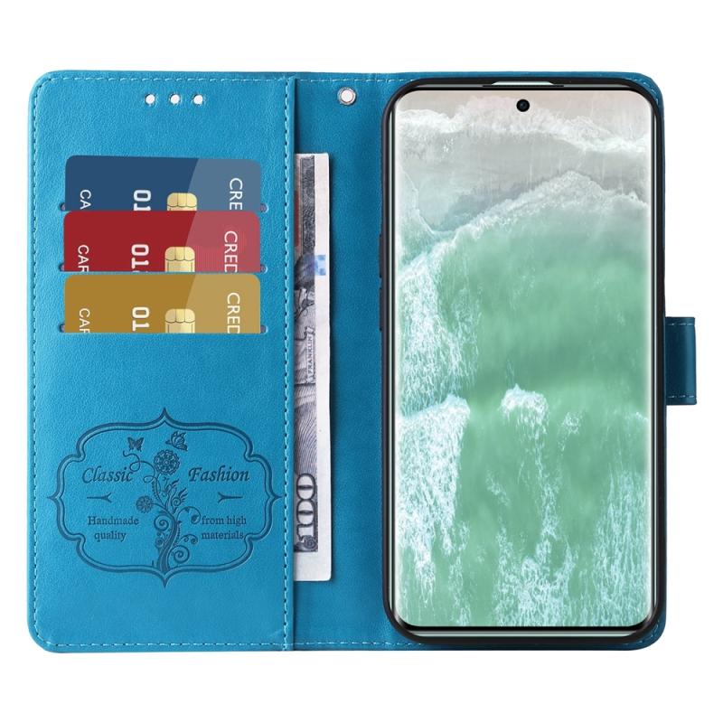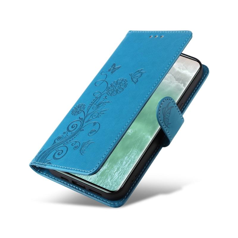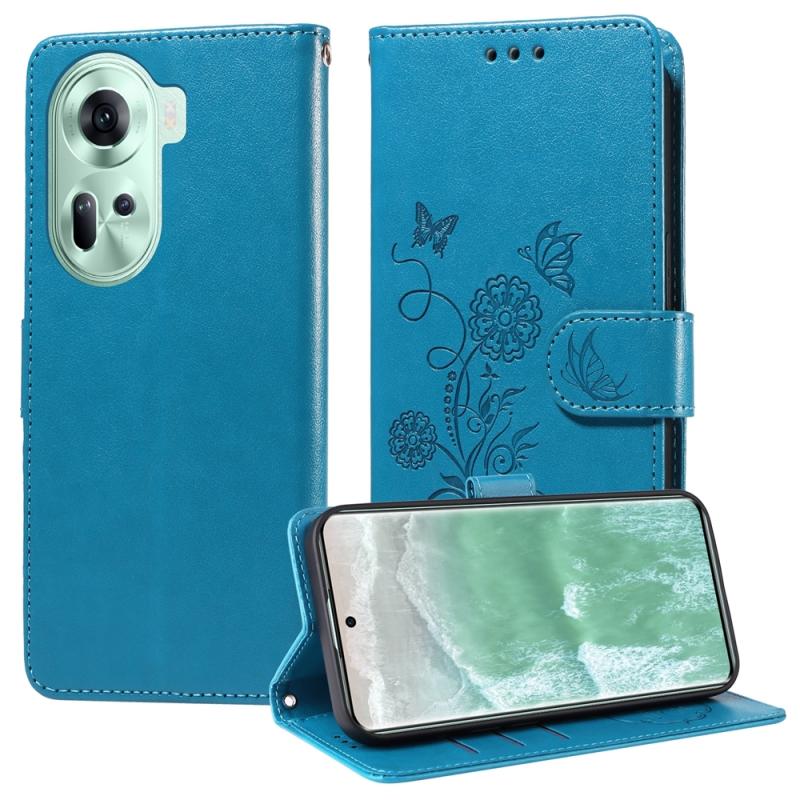 Θήκη τηλεφώνου από δέρμα με ανάγλυφα λουλούδια και πεταλούδες για OPPO Reno11 5G Global (Μωβ)