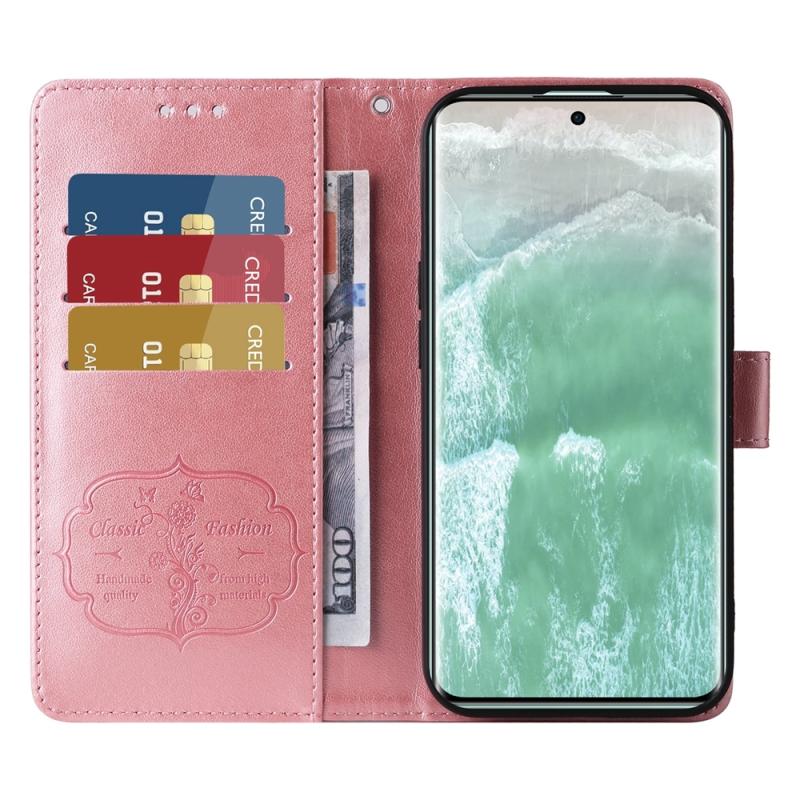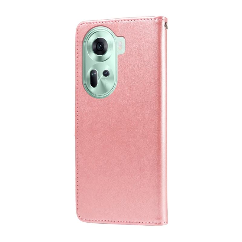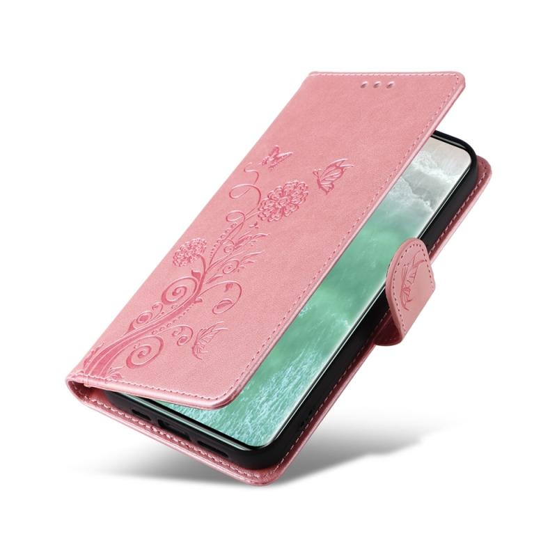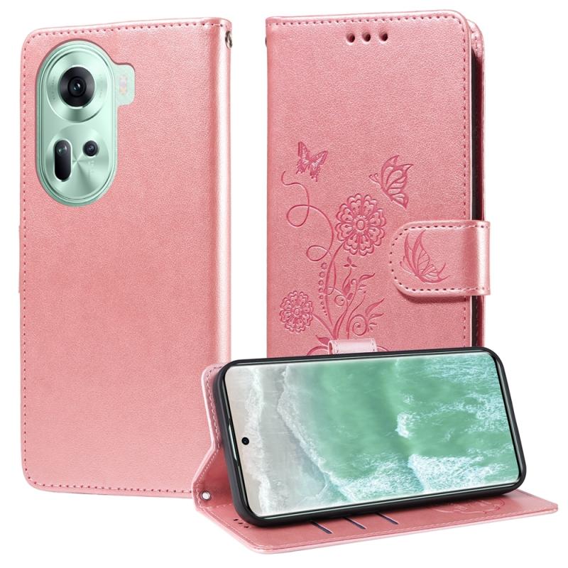 Θήκη τηλεφώνου από δέρμα με ανάγλυφα λουλούδια και πεταλούδες για OPPO Reno11 5G Global (Μωβ)