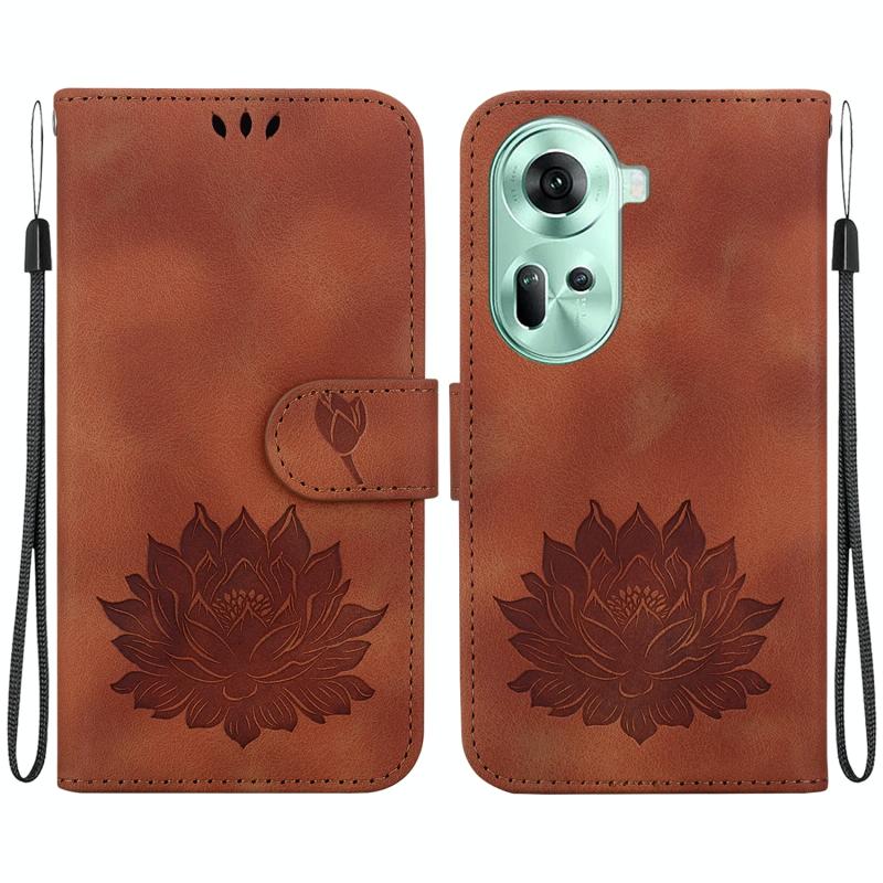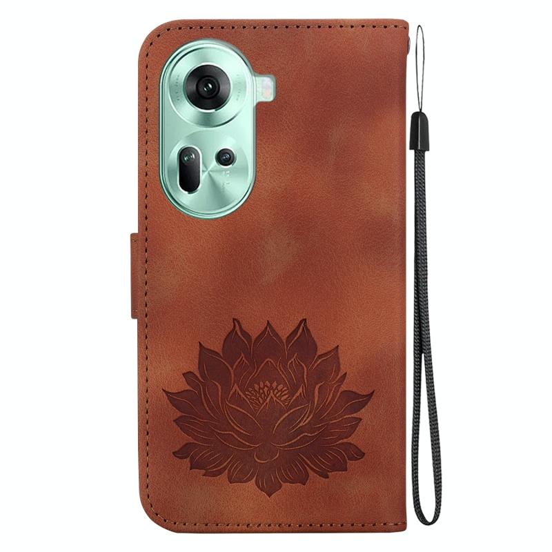 For OPPO Reno11 5G Global Lotus Embossed Leather Phone Case(Brown)