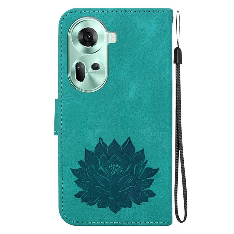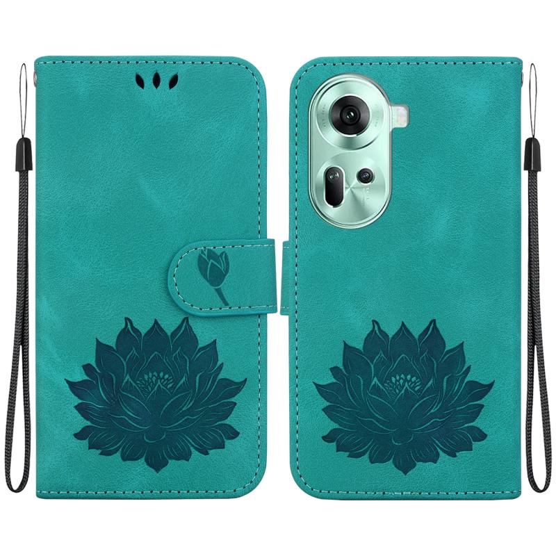 For OPPO Reno11 5G Global Lotus Embossed Leather Phone Case(Green)