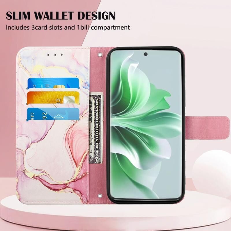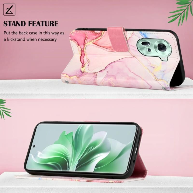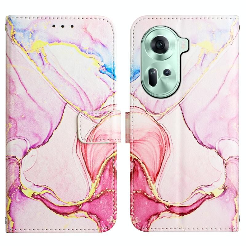 Θήκη τηλεφώνου από δέρμα με σχέδιο μαρμάρου για OPPO Reno11 5G Global PT003 (Ροζ Μωβ Χρυσό)