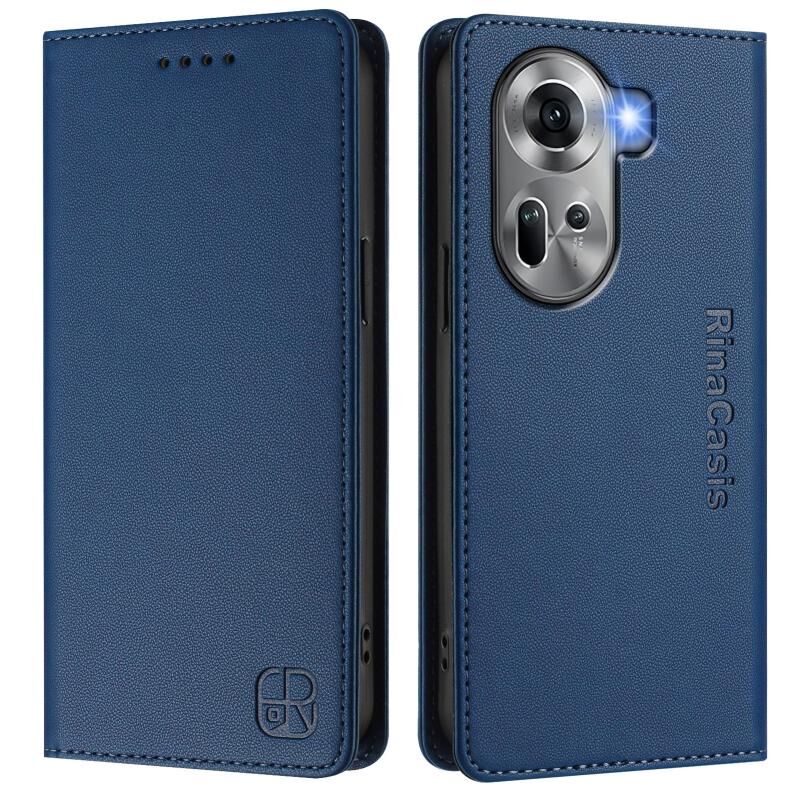 Θήκη τηλεφώνου από δέρμα με μαγνητική απορρόφηση και προστασία RFID για OPPO Reno11 5G Global RC01, διπλού τύπου (Σκούρο μπλε)