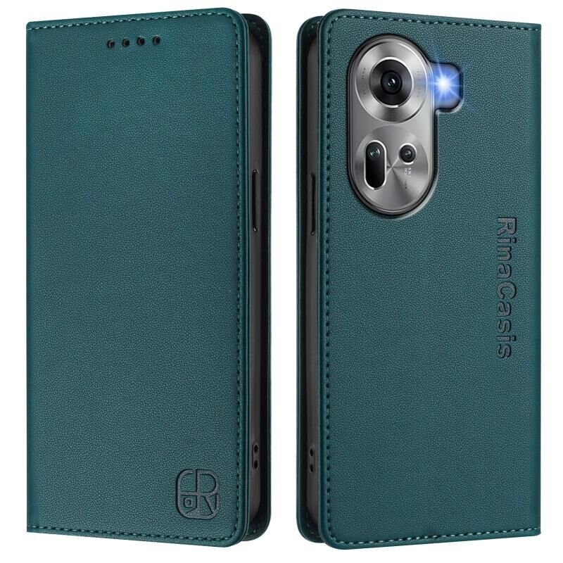 Θήκη τηλεφώνου από δέρμα με μαγνητική απορρόφηση και προστασία RFID για OPPO Reno11 5G Global RC01, διπλού τύπου (Σκούρο πράσινο)