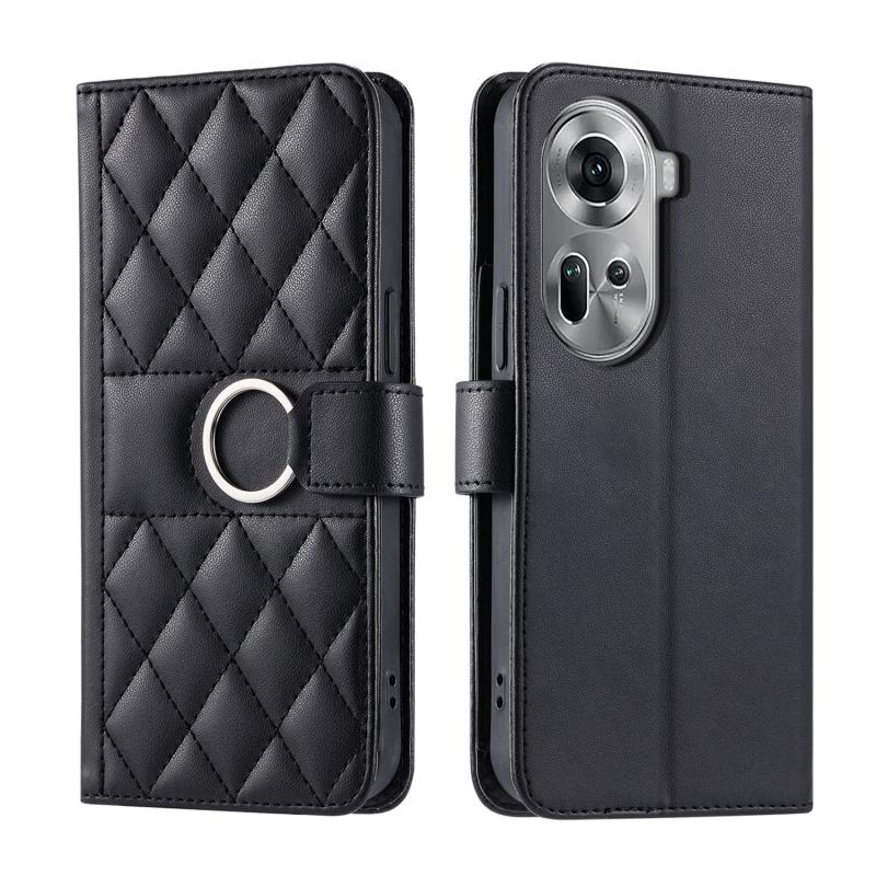 For OPPO Reno11 5G Global Ring Buckle Rhombic Leather Phone Case(Black)