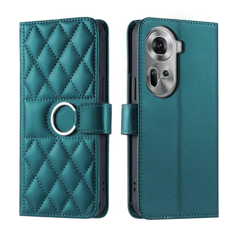 For OPPO Reno11 5G Global Ring Buckle Rhombic Leather Phone Case(Green)