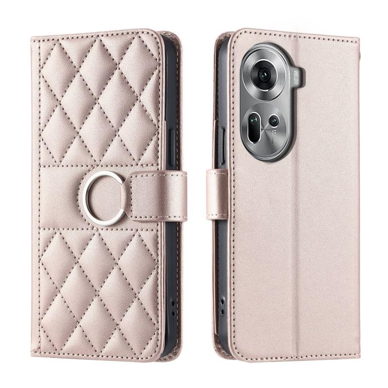 For OPPO Reno11 5G Global Ring Buckle Rhombic Leather Phone Case(Rose Gold)