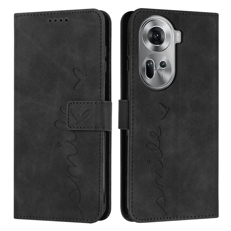 Θήκη τηλεφώνου από δέρμα με ανάγλυφο σχέδιο καρδιάς και μακρύ κορδόνι για OPPO Reno11 5G Global, με αίσθηση δέρματος (Πράσινο)