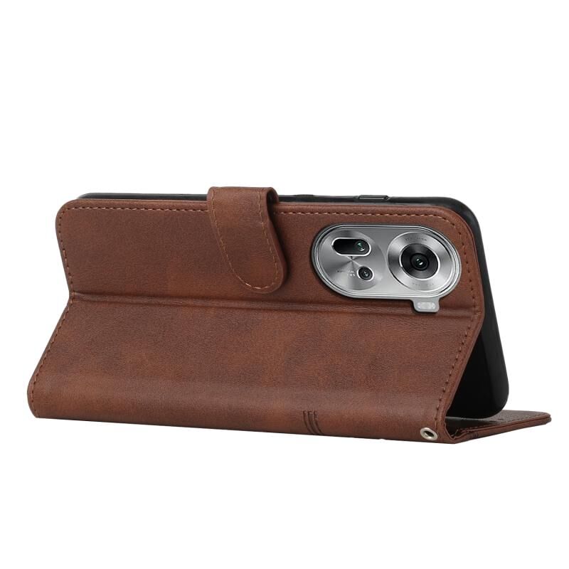 Θήκη τηλεφώνου από δέρμα με υφή μοσχαριού και αγκράφα για OPPO Reno11 5G Global (Καφέ)