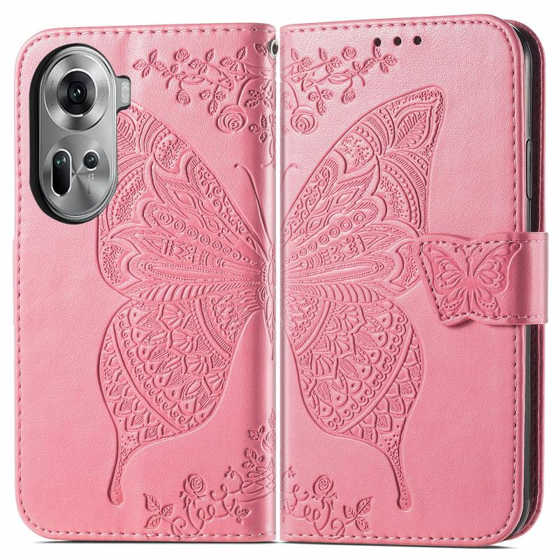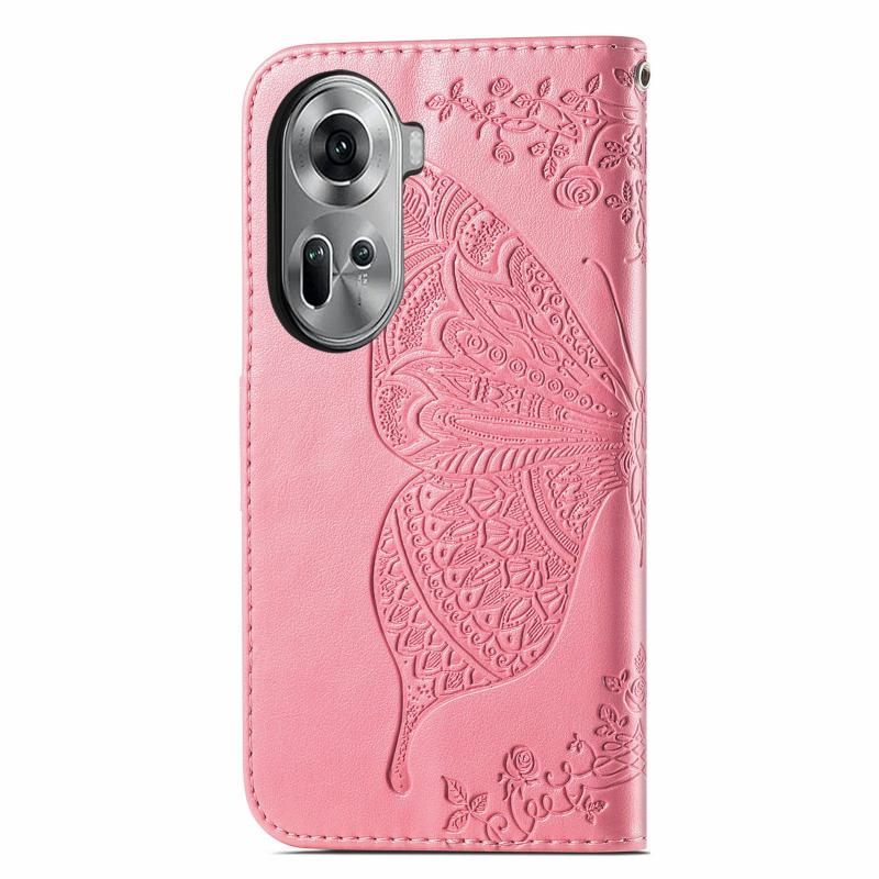 For OPPO Reno11 EU Butterfly Love Flower Embossed Leather Phone Case(Pink)