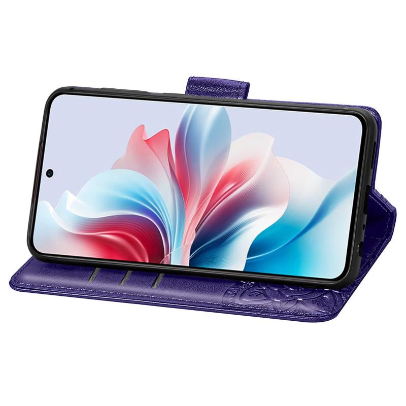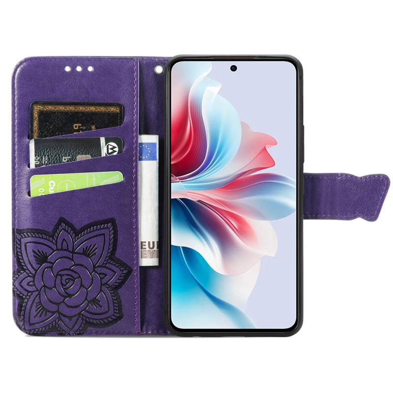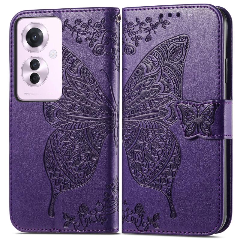 For OPPO Reno11 F 5G Butterfly Love Flower Embossed Leather Phone Case(Dark Purple)