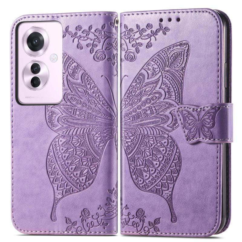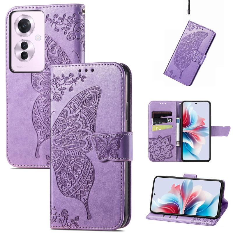For OPPO Reno11 F 5G Butterfly Love Flower Embossed Leather Phone Case(Light Purple)