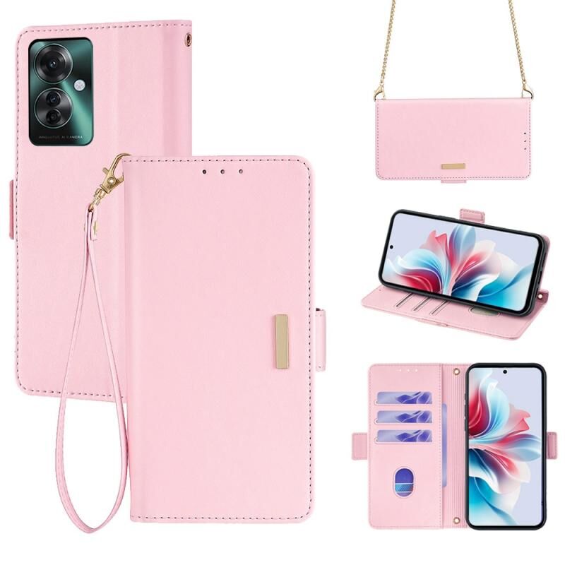 Για OPPO Reno11 F 5G Crossbody Αλυσίδα δερμάτινη θήκη τηλεφώνου (ρόζ)